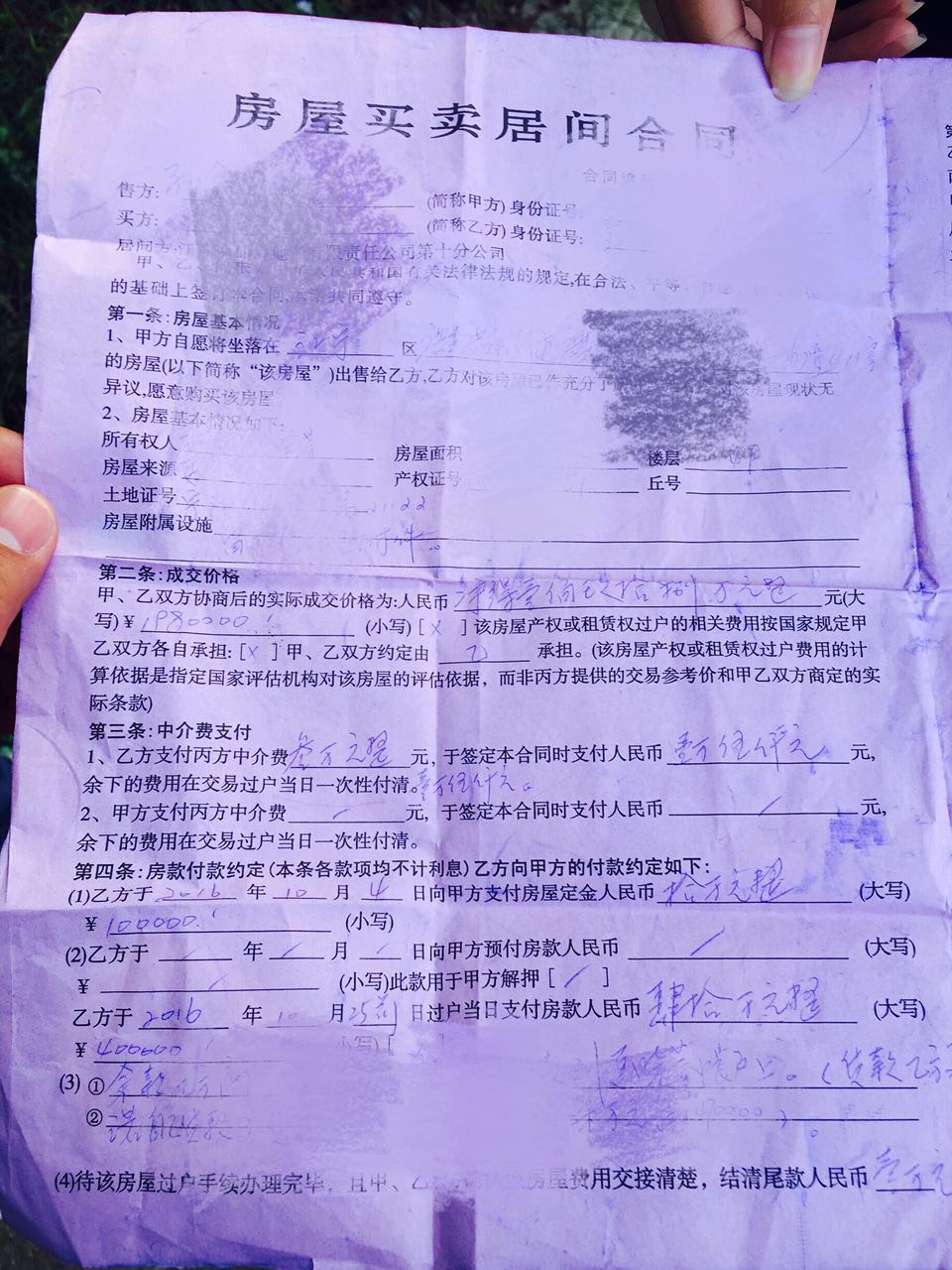 黄先生的户籍在徐州,他想购买的这处房产位于南京马群附近的东郊小镇,110多个平方,均价每平米约一万七千多元。10月4号签订合同后,他分别向房屋中介和卖房人交付了一万五的中介费和十万元购房定金。不过,6号新政出台后,不符合购房资格的黄先生找到中介方希望解除合约却遭到拒绝:“中介意思是中介费我就不退你了,房东意思说你要配合中介去尝试他们的方式,他就说我这边找一个人能帮你搞定社保,能帮你搞定购房证明,至于是哪家的社保他没说。”