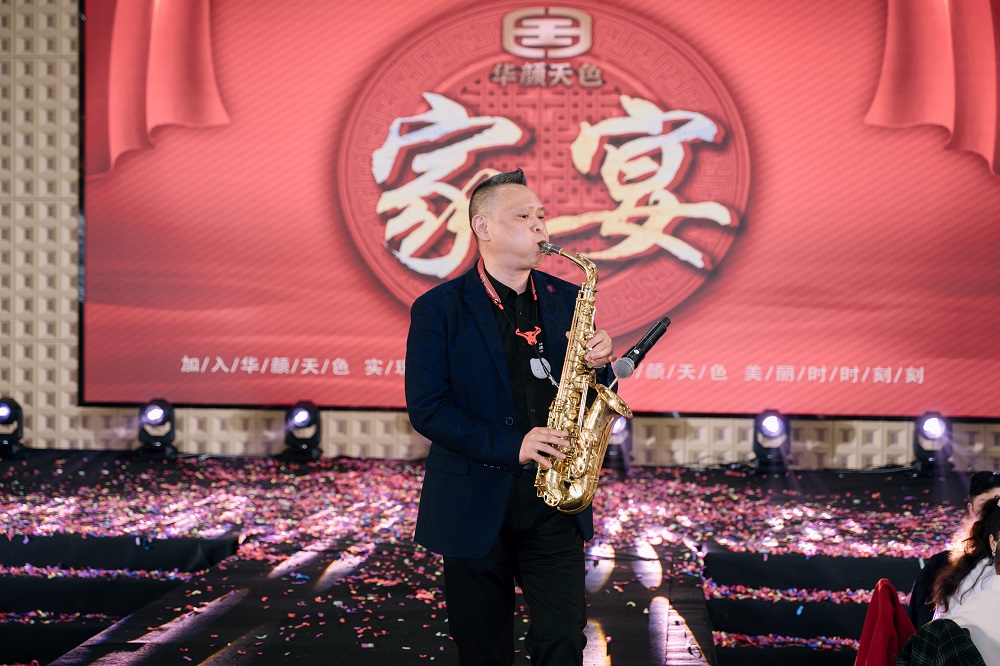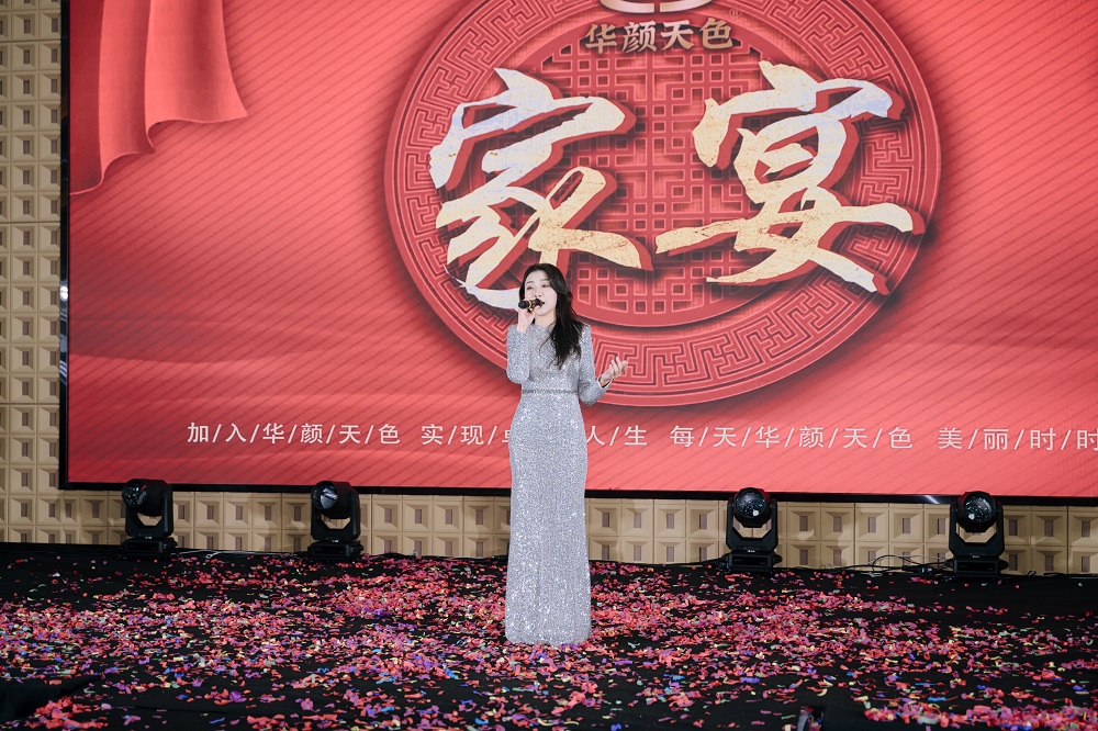 精彩的文艺节目轮番上演。诗歌朗诵《华颜之光》由代理商代表深情演绎,字字句句道出华颜人的心声;实力歌手倾情献唱,悠扬的歌声在宴会厅回荡;萨克斯演奏家带来一曲《回家》,婉转的旋律将现场氛围推向高潮。多轮抽奖环节穿插其中,现场欢呼声此起彼伏。