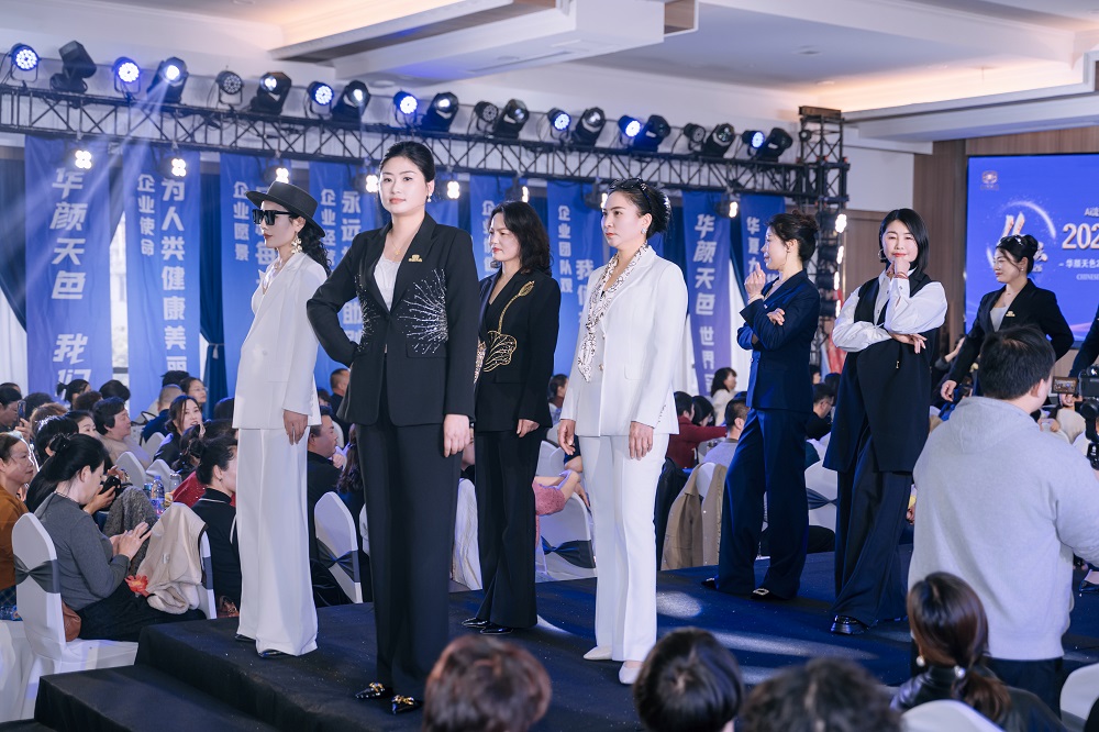 庆典在震撼的灯光秀中拉开帷幕。20位“大妈总裁”代表身着高级定制礼服,在璀璨的灯光下依次走上T台。她们平均年龄50岁以上,有的是下岗工人,有的是全职妈妈,如今在华颜天色平台上实现了年入十几万甚至数十万的蜕变。她们自信从容的步伐、昂扬向上的精神风貌,成为全场最动人的风景,掌声与欢呼声经久不息。