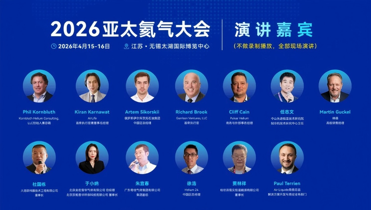 North American Helium总经理、俄气氦气出口部负责人、伊尔库茨克石油氦气部总经理、Mitsui总经理,AirLife总经理、PJSC Gazprom氦气出口部负责人,Irkutsk Oil Company总经理、ASPI总经理、Pulsar Helium总经理、还有QatarEnergy、Uniper、林德、液化空气、空气化工、岩谷和梅塞尔等全球氦气主力公司领导纷纷出席在中国无锡举办的2026亚太氦气大会,这种高级别国际大会在中国气体行业尚属首次。