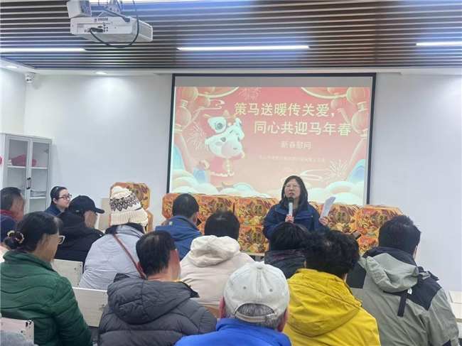 新春将至,暖意融融。为切实关怀辖区残疾人朋友的生活与精神需求,让他们度过一个欢乐祥和的马年春节,2月11日,莫愁湖街道残疾人之家开展 “策马送暖传关爱,同心共迎马年春” 春节慰问活动。为现场40名残疾人及家属带来精彩的文艺表演与暖心福利,并为 60 户残疾人家庭开启上门慰问服务,以实际行动传递党和政府与社会各界的关怀。