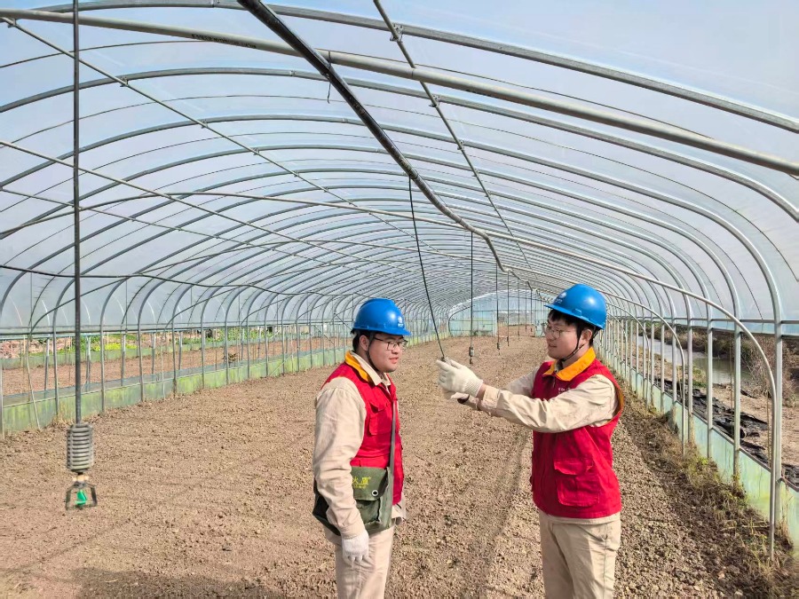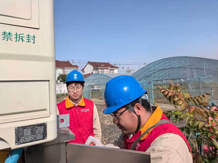 11月27日中午,国网高邮市供电公司临泽供电所员工王保罗、秦浩前往高邮市临泽镇营南村食用菌种植基地,对用电控箱里的断路开关进行维护,并钻进温室大棚检查电气化喷灌设备。