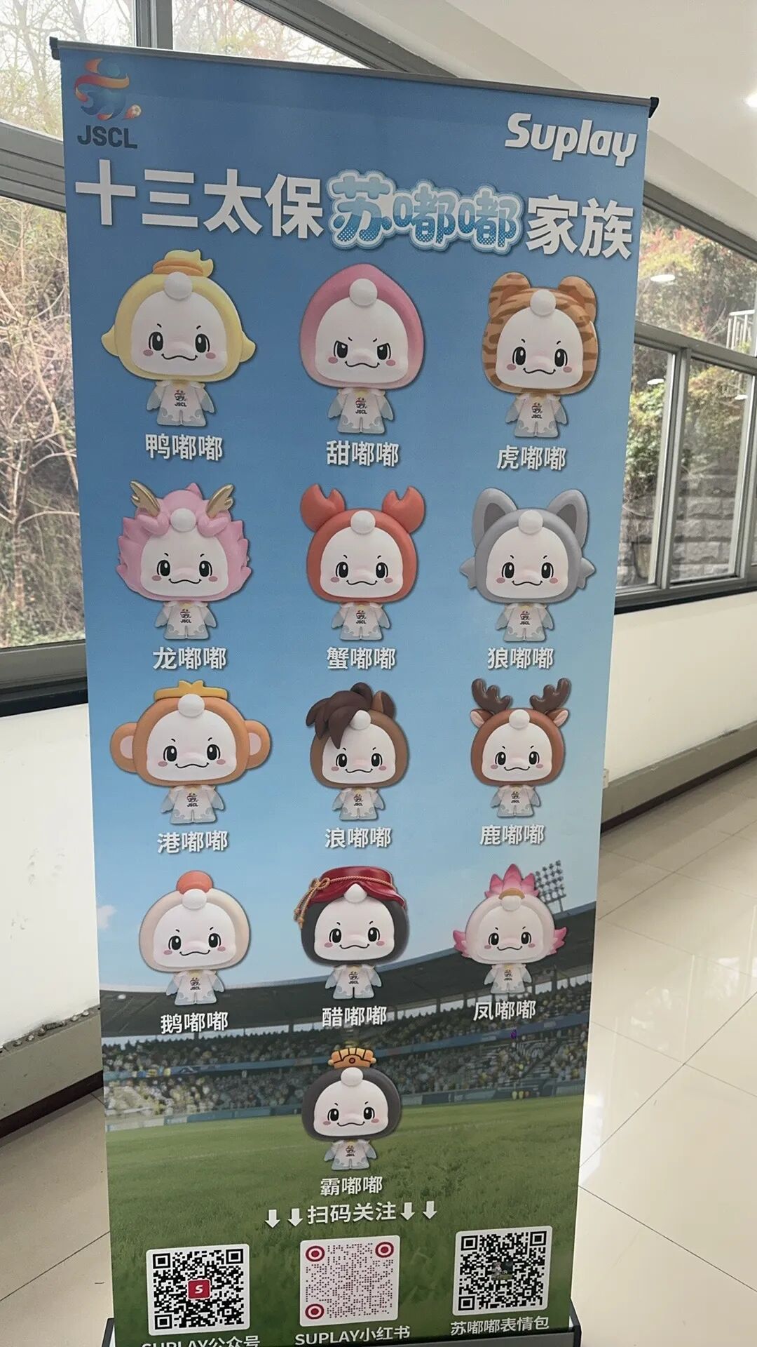 伴随着吉祥物苏嘟嘟的正式上线,本次还同步推出十三太保苏嘟嘟家族盲盒,依托江苏十三城特色延伸出十三款造型各异的萌趣形象,一城一韵、各具风采。未来,让我们和苏嘟嘟家族一起,为2026“苏超”呐喊助威,共赴热血绿茵!