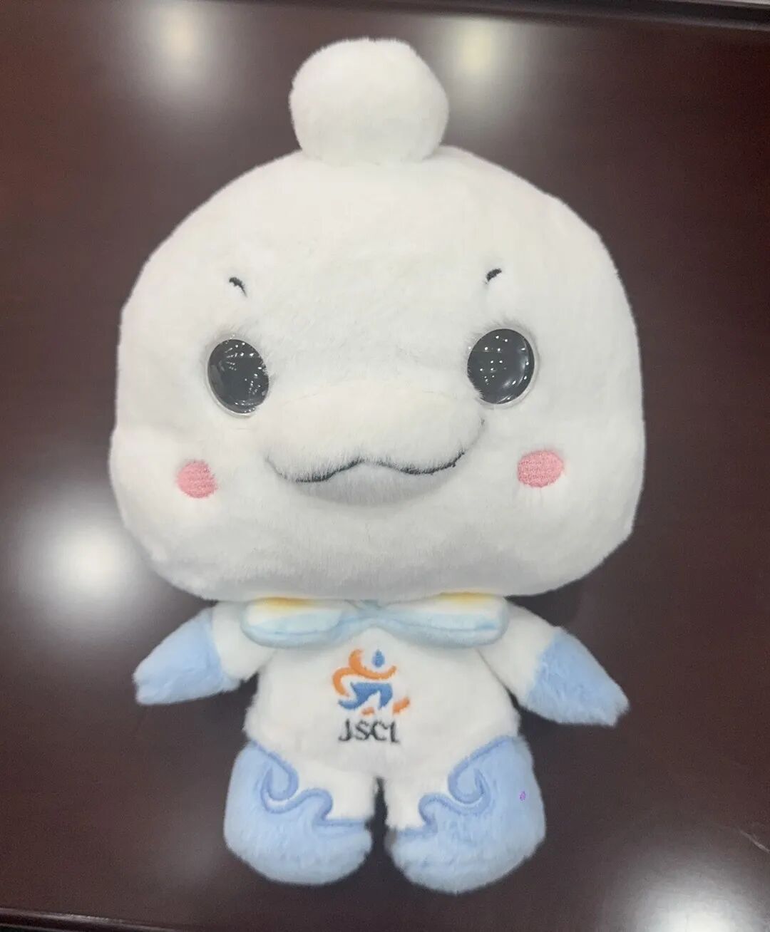 苏嘟嘟原型为长江江豚,以流线型轮廓塑造形象,借标志性微笑传递活力,额头夸张化设计寓意智慧、灵动。设计以江豚为核心,融合江苏昆曲水袖、茉莉花元素,鳍部似水袖,肩部呈茉莉云肩状,足踏水波纹样,整体结合地域文化与运动感,诠释赛事精神,彰显“水韵江苏”文化自信。