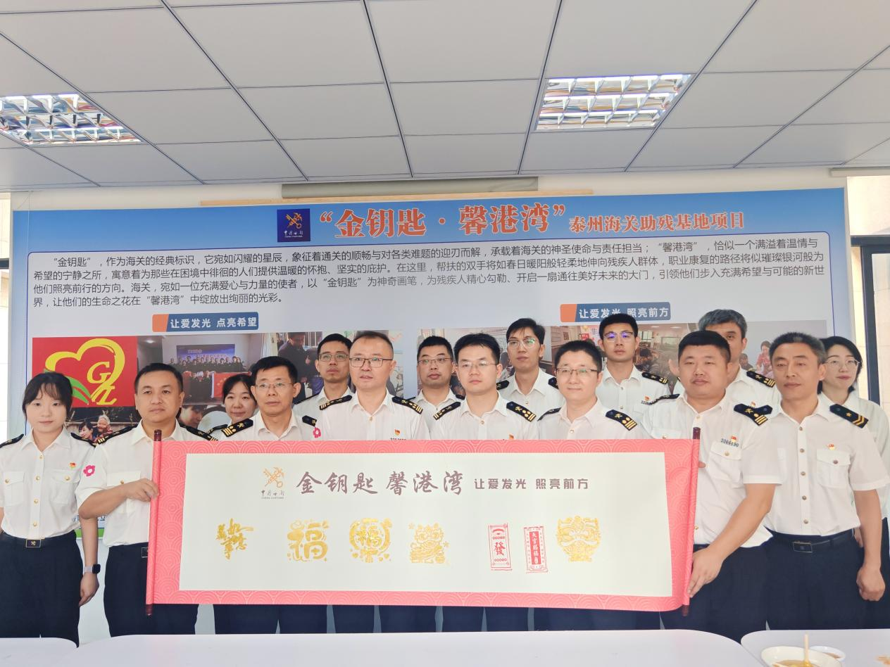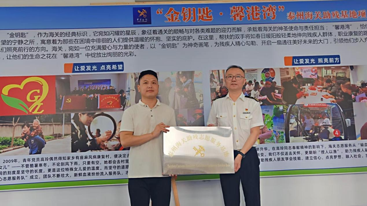 紧接着,顾国峰书记代表泰州海关,向凤凰街道残疾人之家授予了基地牌匾。这块沉甸甸的牌匾,不仅是一份荣誉,更是一份沉甸甸的责任与信任,象征着双方对助残事业的共同承诺与担当。