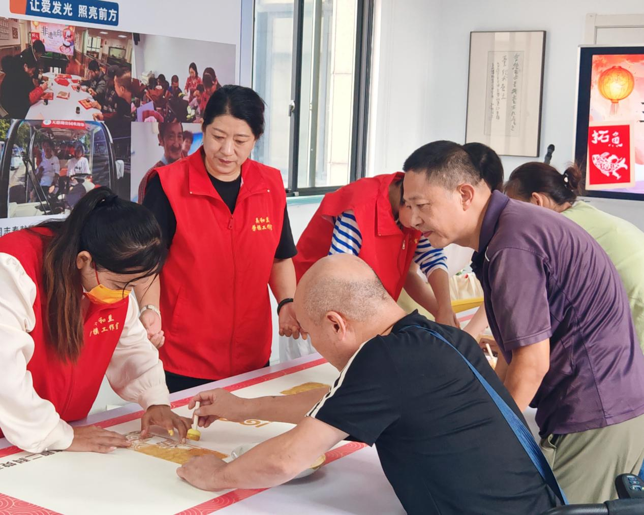 仪式结束后,为庆祝基地启航,现场还精心组织了非遗拓印文化体验活动。在泰州美术馆张丹老师的指导下,与会领导、嘉宾与残疾人朋友一同动手,DIY专属纪念包,在墨韵飘香与亲手创作中,共同铭记这个意义非凡的日子,感受传统文化的魅力与社会的温情。