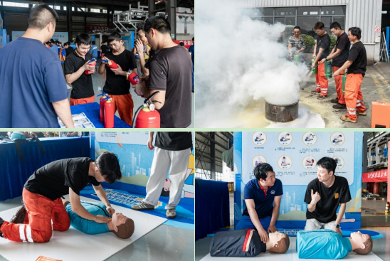 活动现场聚焦实战需求,设置模拟灭火、心肺复苏两大核心实操环节,让理论知识转化为实际能力。在模拟灭火体验区,专业指导人员手把手教学,详细拆解灭火器 “提、拔、握、压” 四步操作要领,员工们逐一上手实操,从 “看懂” 到 “会用”,切实提升面对初期火情的快速应对能力。心肺复苏体验区同样人气高涨,应急救援员现场演示意识判断、胸外按压、人工呼吸等完整急救流程,针对按压深度、频率等关键要点反复强调。员工们在模拟人模型上反复练习,在专家的实时纠错与指导下,逐步精准掌握急救技巧,有效提升了突发事件中的应急救护能力。