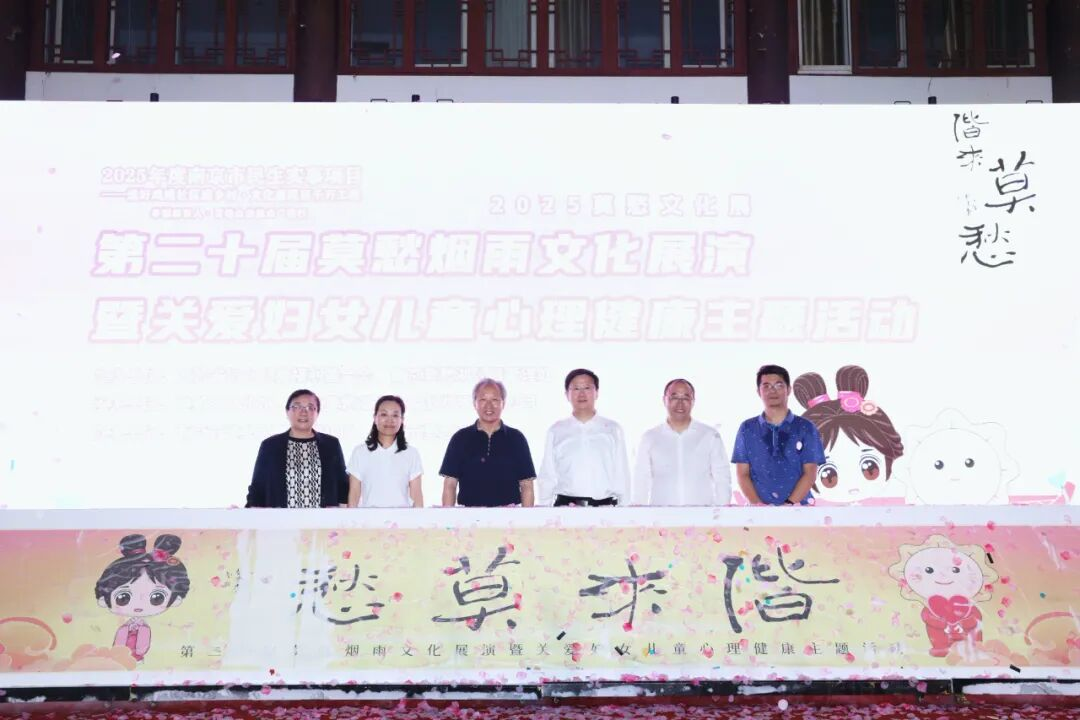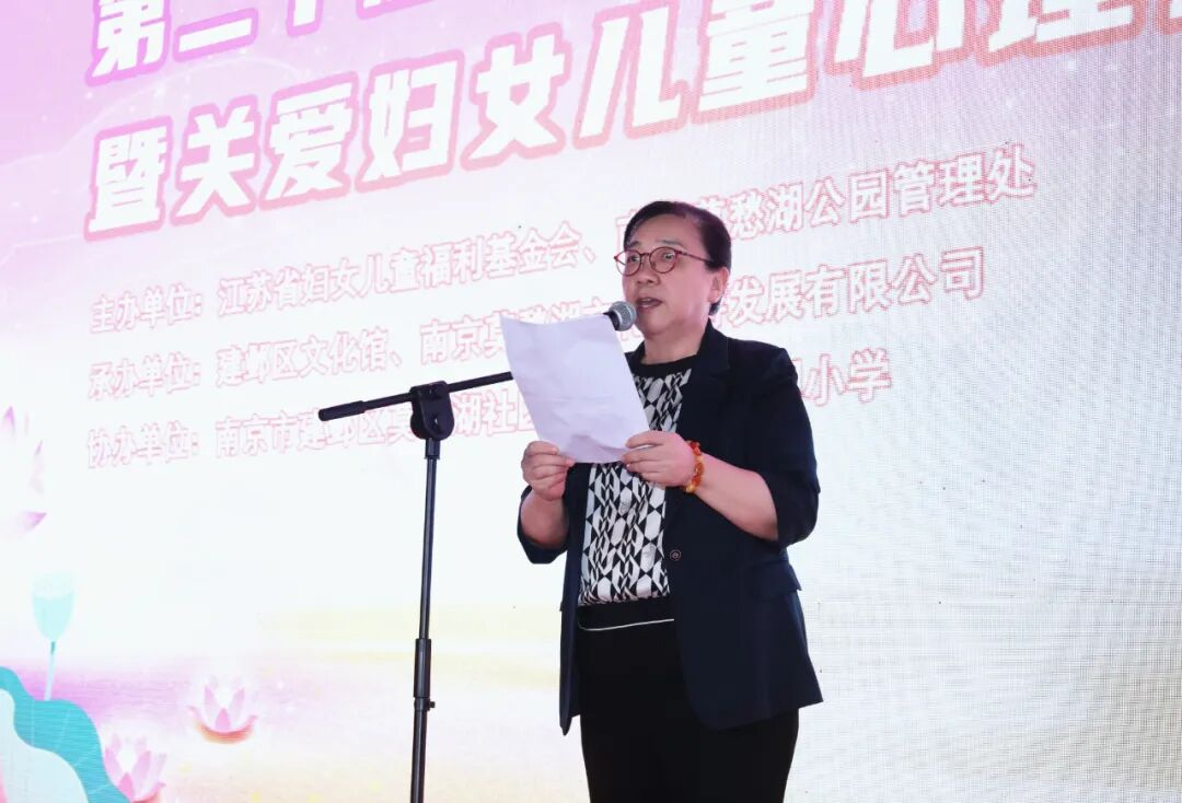 江苏省妇儿基金会理事长赵鹏,省文化和旅游厅原一级巡视员、省非遗保护协会会长朱斌,省妇联副主席康莉,南京市建邺区委书记姜宸,江苏省妇儿基金会副理事长兼秘书长顾敏,副理事长陈殿云、宋晓辉、张惠春,省妇儿基金会莫愁心理关爱中心总顾问、东南大学应用心理研究所所长马向真,南京市莫愁湖公园管理处主任杨志军等领导出席活动。