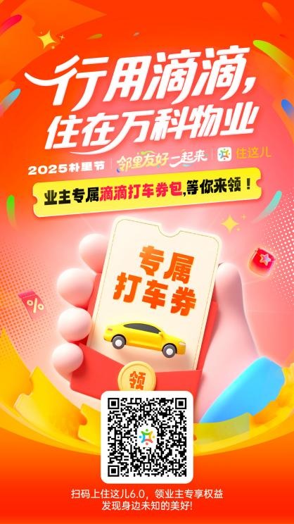 作为万科物业第23届“朴里节”的重磅活动之一,日前,万科物业官方服务平台“住这儿“APP”于9月26日正式上线业主专属滴滴打车优惠券,以居住空间为圆心,无缝链接出行等高频生活服务。