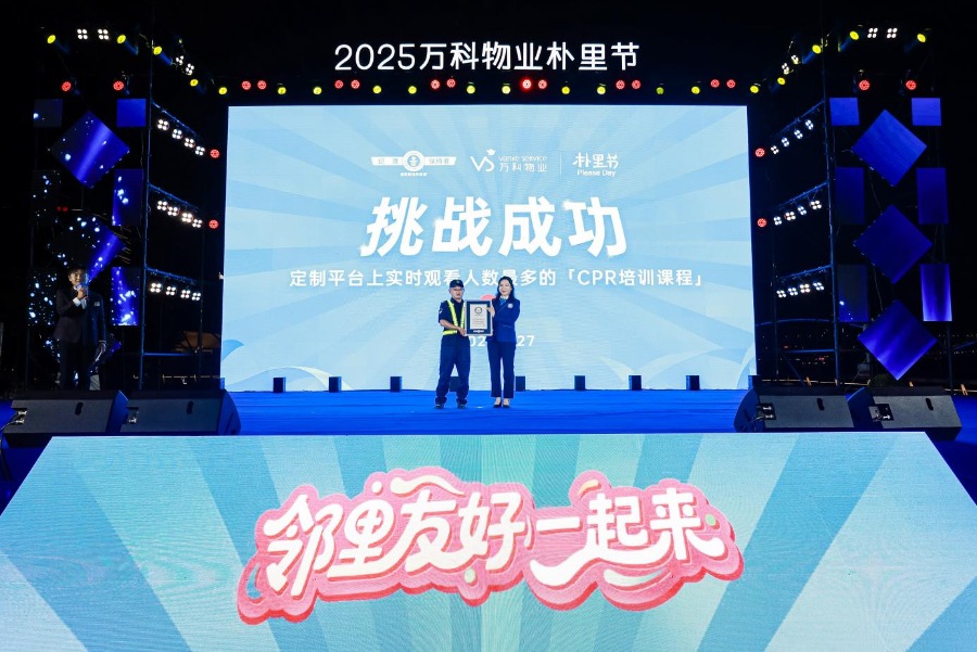 与此同时,9月27日,在上海朴里节主会场,一项新的吉尼斯世界纪录正式诞生——通过万科物业“邻居好服务”视频号,超两万名用户同时在线学习心肺复苏(CPR),创下“定制平台上实时观看人数最多的CPR培训”纪录。这场万众瞩目的活动,成为万科物业推动社区应急救护能力建设的标志性事件。