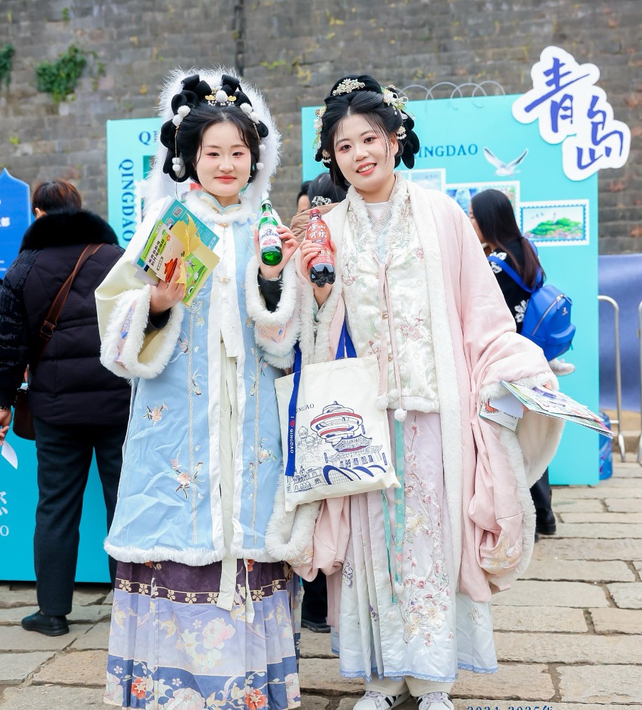 互动打卡之余,青岛美食惊艳亮相。俗话说“冬至大如年”,市南区文旅局带着热气腾腾的海鲜水饺,将“团圆幸福,春归有期”的祝福送至广大市民游客,还带来了麻辣小海鲜、吕氏疙瘩汤、青食钙奶饼干、崂山可乐、青岛原浆啤酒等一众经典“青岛味道”,吸引不少市民游客味蕾大动、现场品尝。