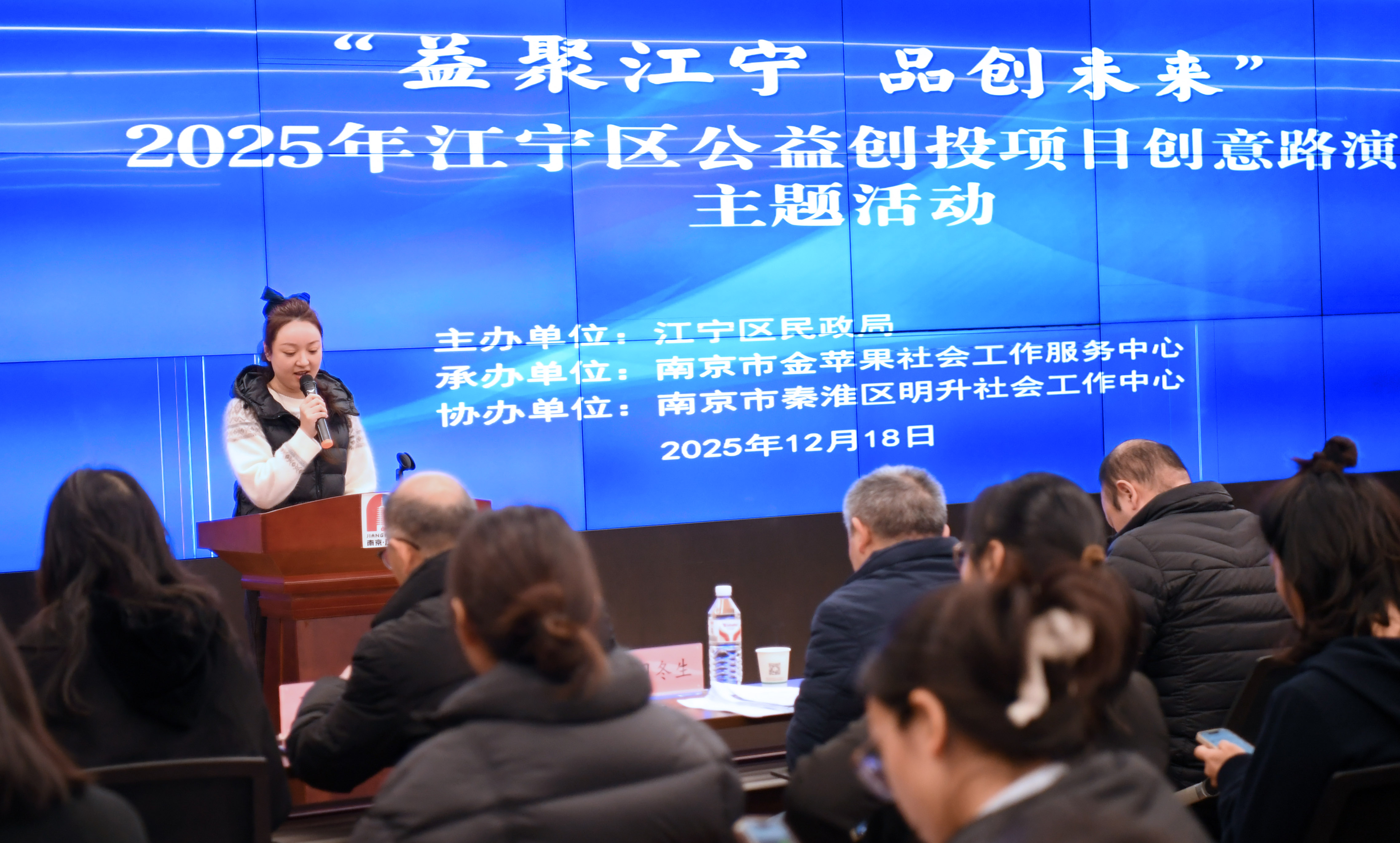 近日,“益聚江宁,品创未来”——2025年江宁区公益创投项目路演活动举办。本次活动由江宁区民政局主办、南京市金苹果社会工作服务中心承办,以搭建公益项目展示交流平台、汇聚社会治理创新力量为核心,通过项目展演、专家点评等环节,全方位呈现江宁区公益创投项目的新成果、新思考、新方向,为基层民生服务提质增效注入强劲动力。