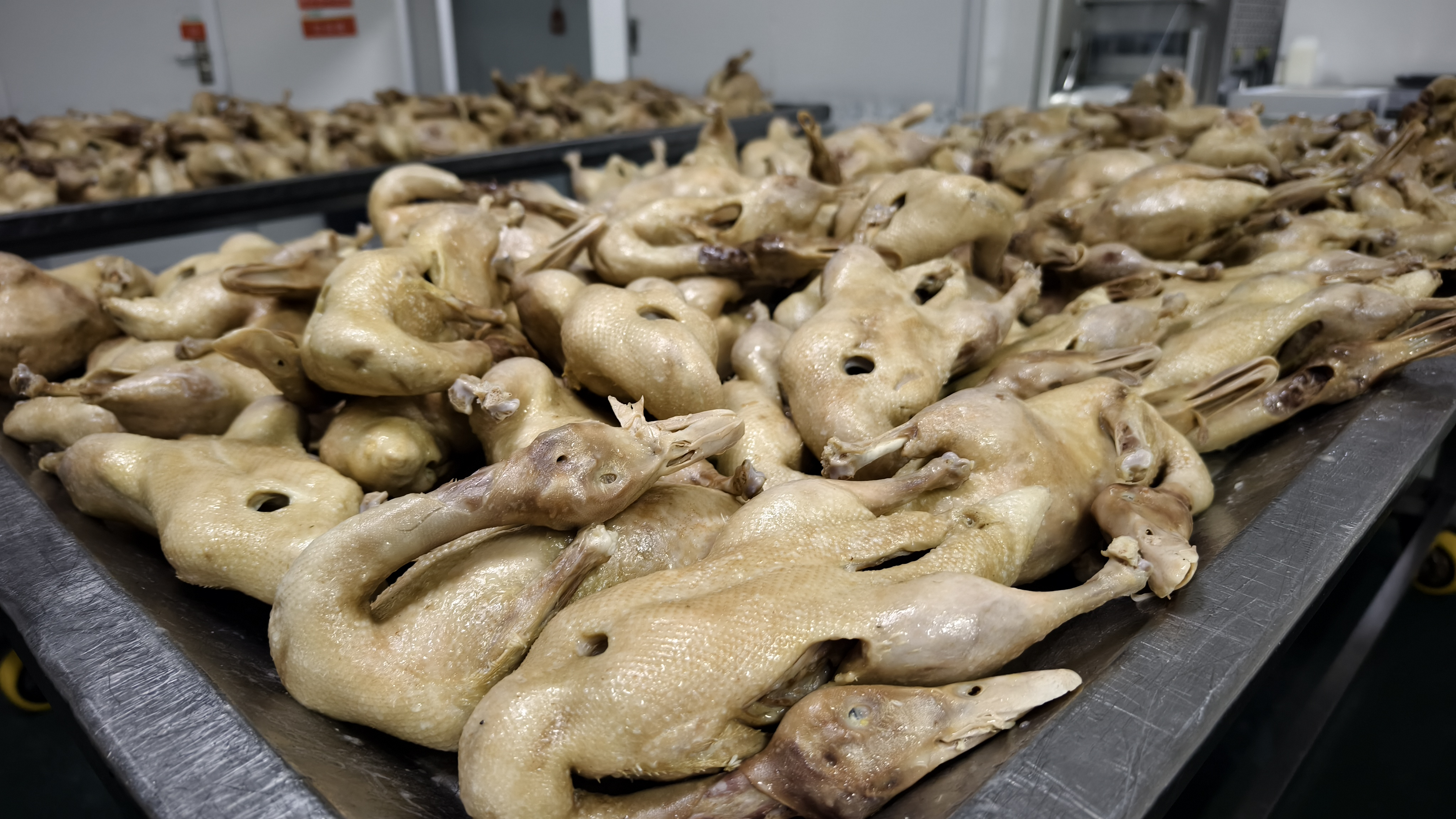 新润集团率先引入现代化生产线,实现了传统工艺与现代化技术的完美融合,建立“从农场养殖到餐桌”的全流程质量监控体系。加工现场全程实时监控,顾客在手机APP上可以一目了然;每一只鸭子都拥有专属“档案”,从鸭蛋孵化批次、生长饲料,到疫苗记录、屠宰时间,全程可追溯,从源头阻断安全隐患。