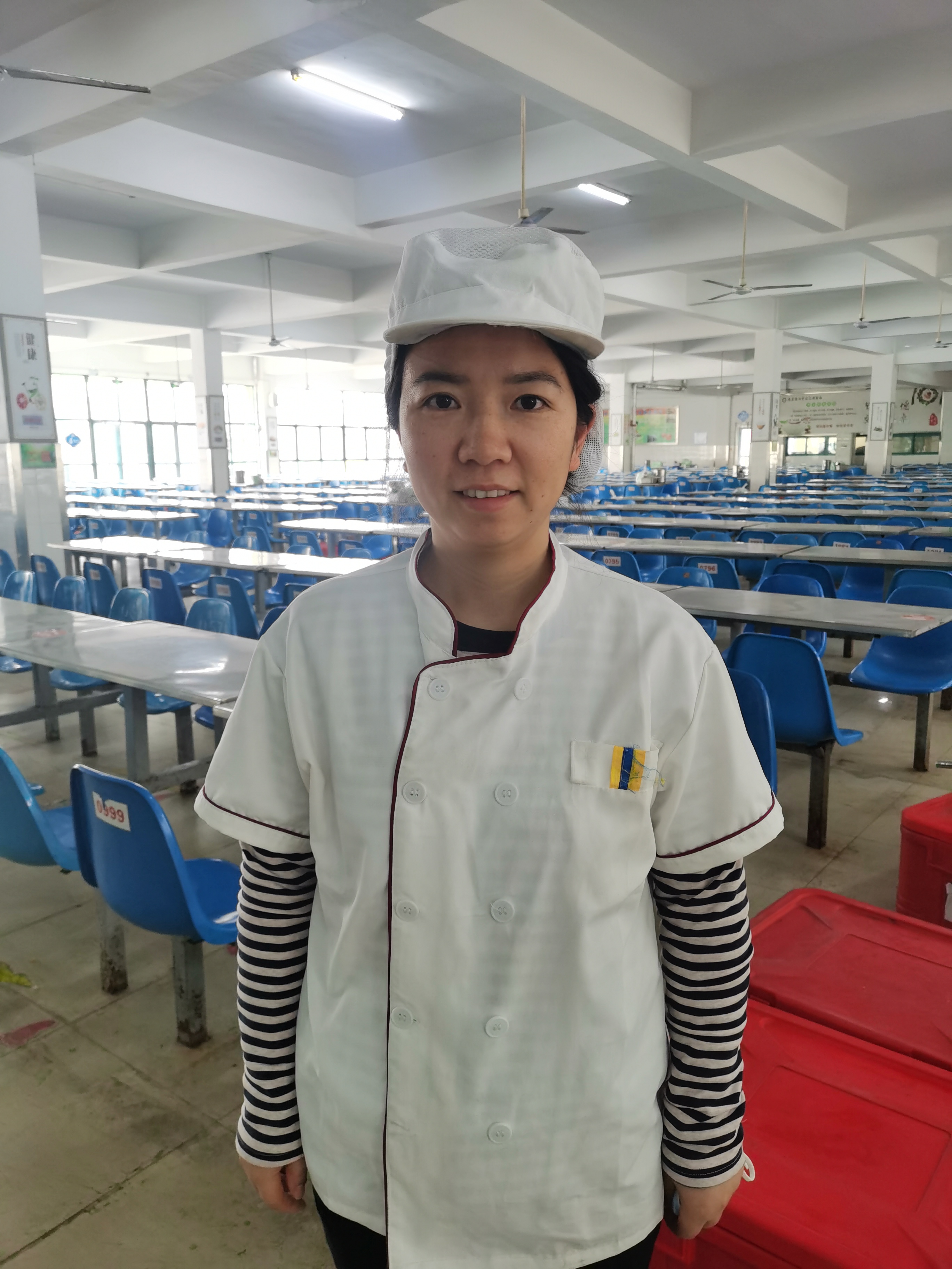在江宁岔路学校,食堂员工丁常美,当初她想进学校食堂时,唯一担心的是自己的孩子在班级会不会被人瞧不起。当她把自己的想法与女儿说起时,哪知道女儿非常豁达,还主动告诉妈妈:“您为同学们服务,靠劳动吃饭,很光荣呀。”这让丁常美欣慰不已,常常将这件事与员工们分享。她自己工作的也非常精心,非常努力,从食材挑选,清洗切配到大师傅们烹饪,再分餐,每一步都不敢松懈。自己的手,会因为洗菜,切菜,择菜变得粗糙,切洗站久累的腰酸背痛,但她无怨无悔。事实上,同学都羡慕她的女儿有一个在学校工作的妈妈,同学们一遇见她,总是争先恐后地喊“阿姨好”。