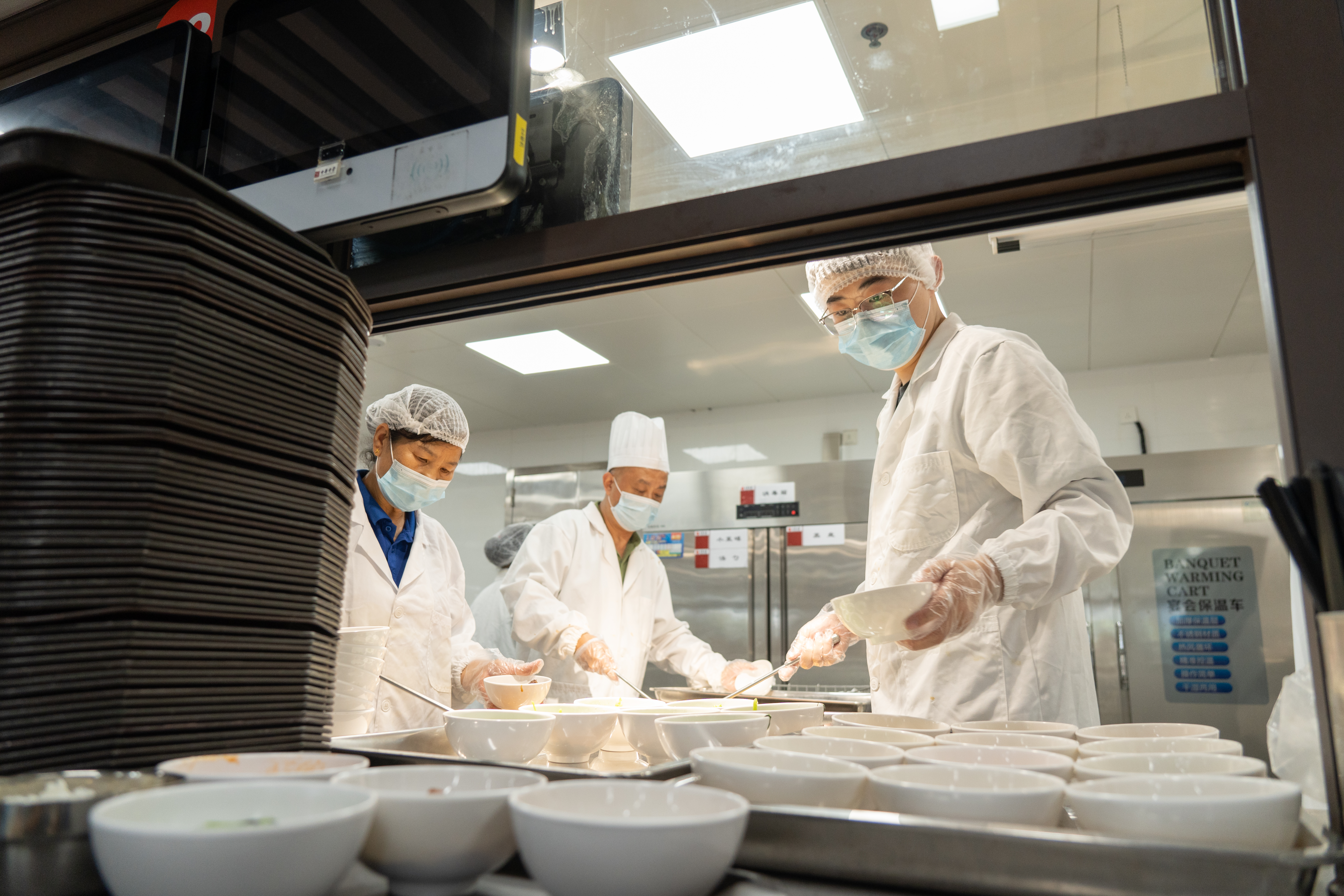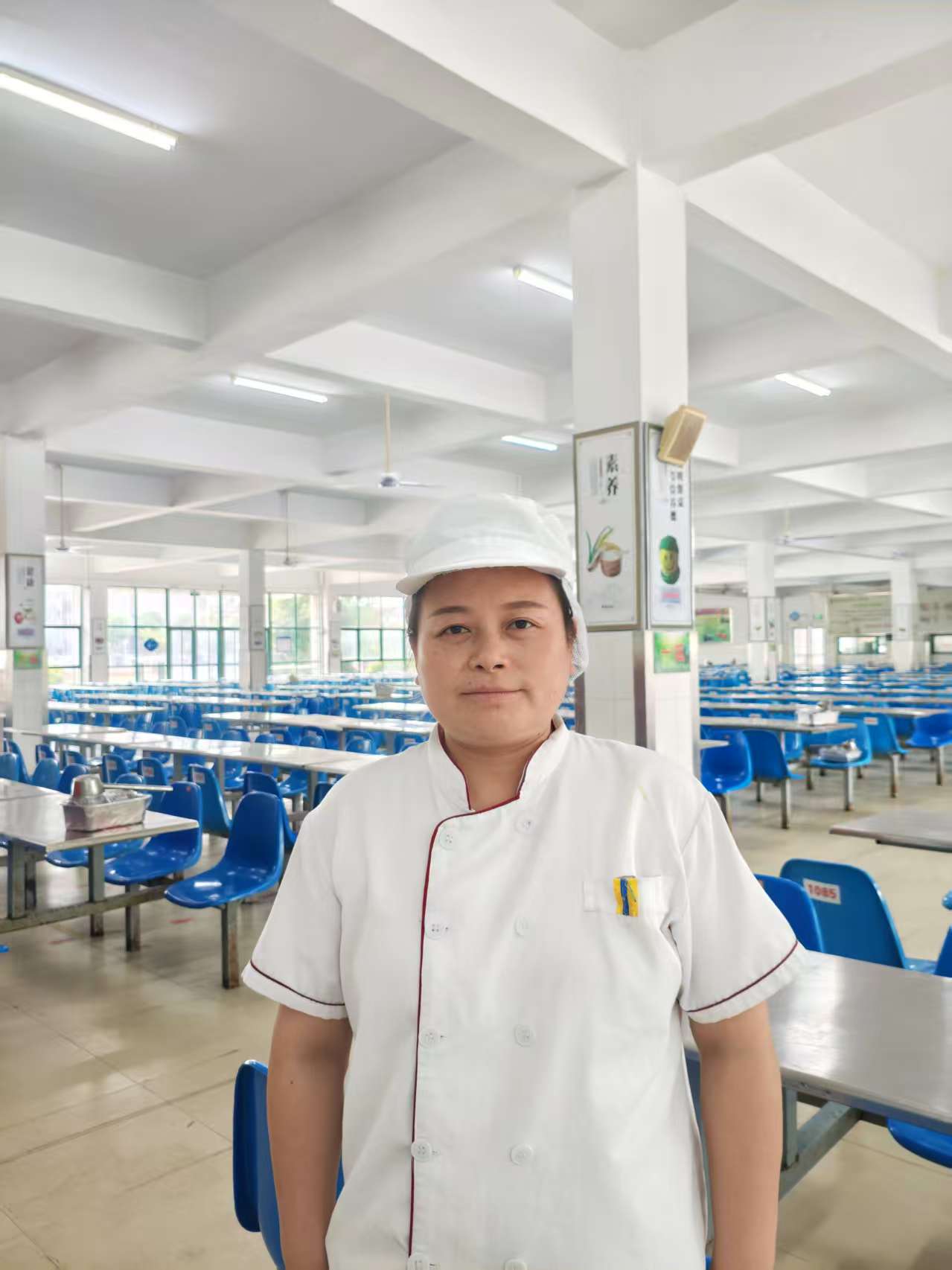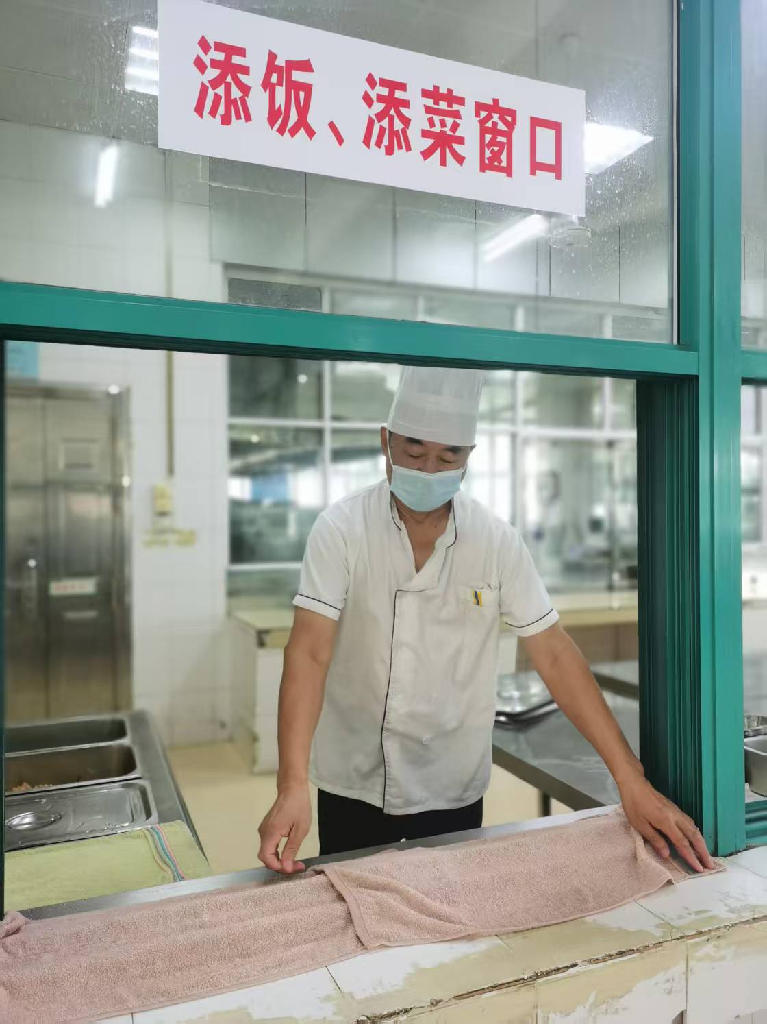 最浓烈的守望,藏在八月的蒸腾热气里。军训期间,需求骤增,面点间成了持续的“桑拿房”,灼热的水汽模糊了视线。为了给参加军训的孩子准时吃上一口热食,她每日坚守十几个小时,汗水从未干过。中暑的眩晕袭来,她靠着墙稍歇片刻,又回到工作台前;臂上闷出成片的红疹,也只在换班时匆匆抹点药膏。直至校领导与家人几乎“强迫”她去医院检查,她才暂时离开。然而心却留在那一笼笼等待蒸煮的面点上,检查一结束,身影便又匆匆回归了这片她所守护的烟火之地。