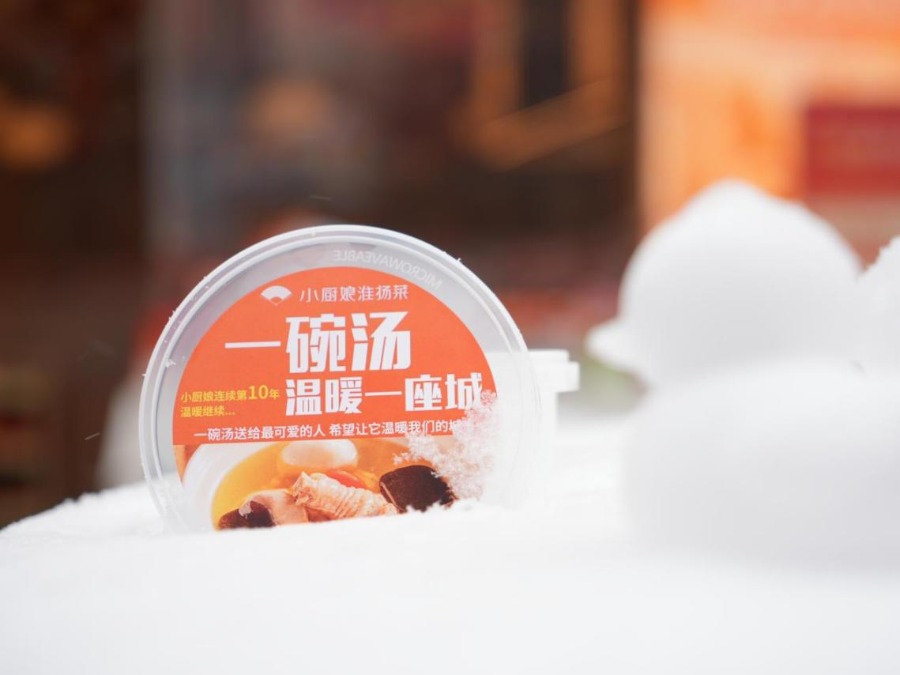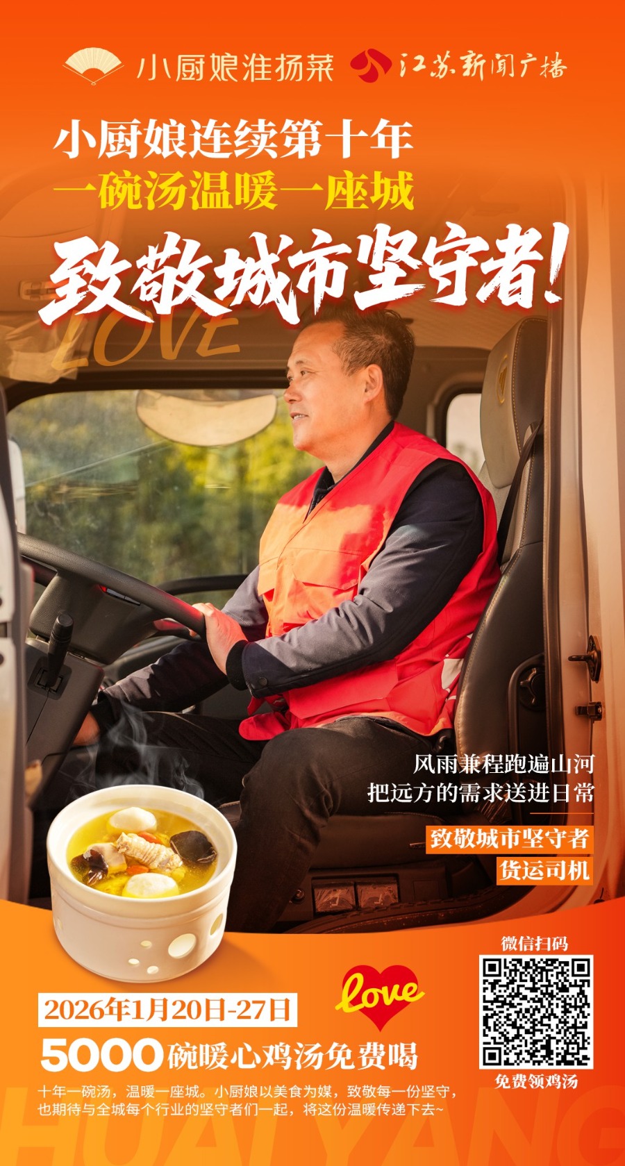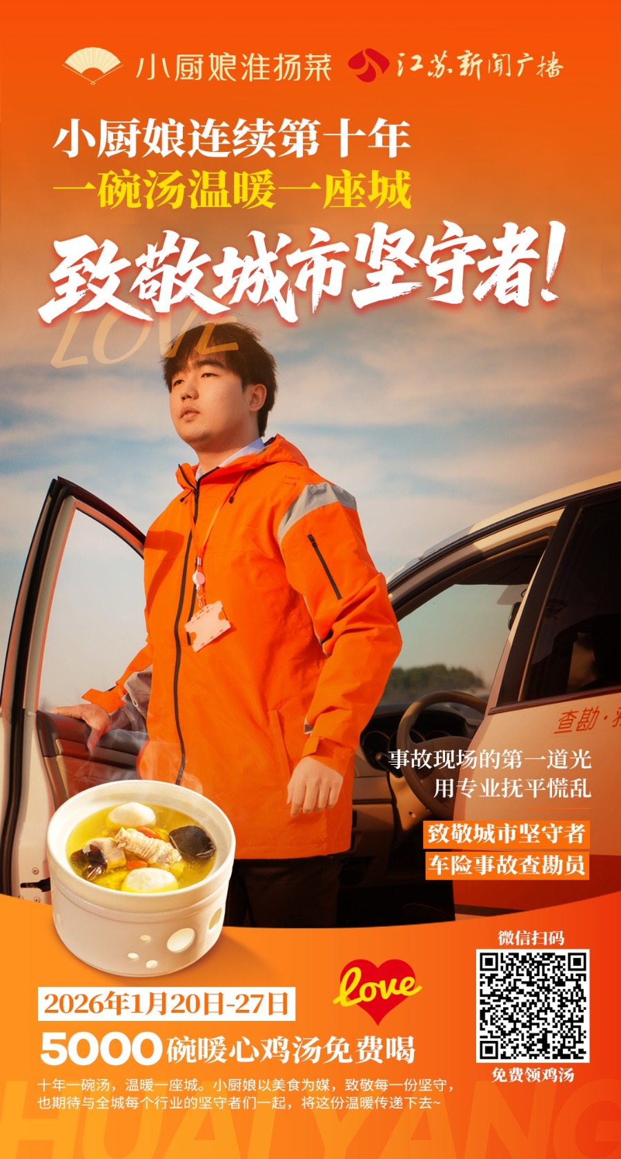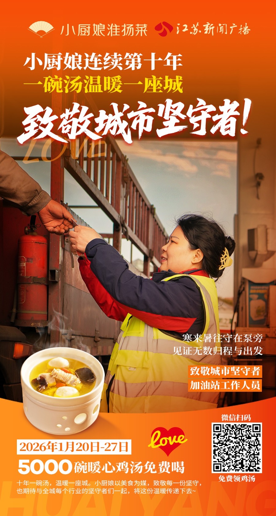 大寒时节遇大雪,暖流却在南京城中悄然传递。江苏新闻广播联合小厨娘淮扬菜发起的“暖心工程”——“一碗汤温暖一座城”如期而至。这已是小厨娘连续第十年,在大寒时节为默默付出的城市劳动者赠送精心熬制的暖心鸡汤。一碗热汤入怀,驱散了风雪的寒意,更致敬着每一份平凡岗位上的坚守。十年如一日的守护,不仅温暖了寒冬,也让这座雪后的城市,多了一份直抵人心的温度。