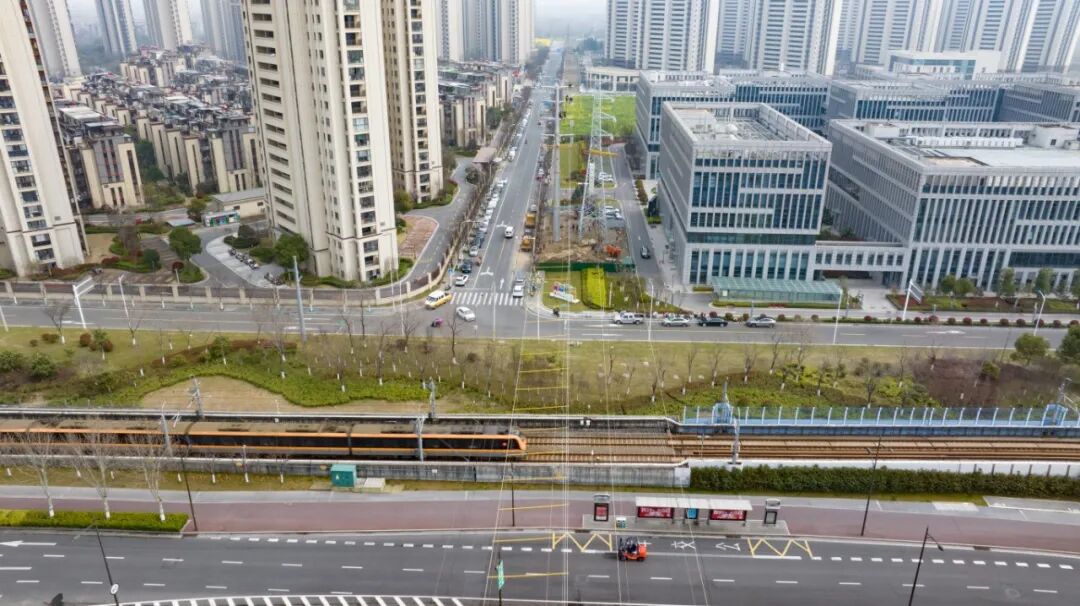 次日0时30分,地铁接触网挂好接地线、江北大道短暂封停,作业指令正式下达。无人机率先跨越跨江大道与S8地铁,送来了牵引主承力索架用的导引绳。