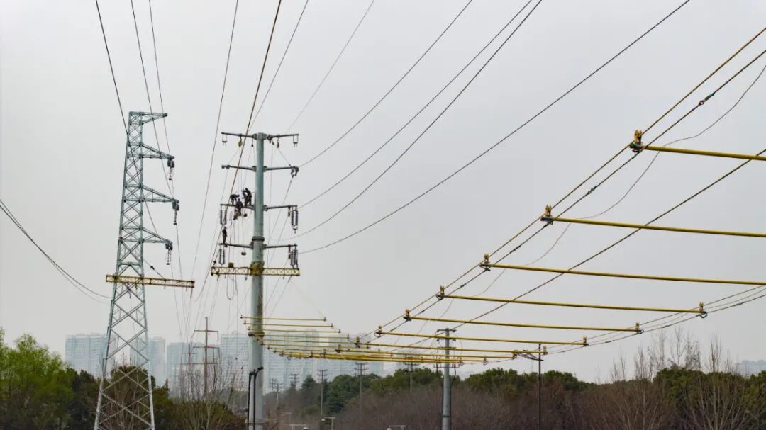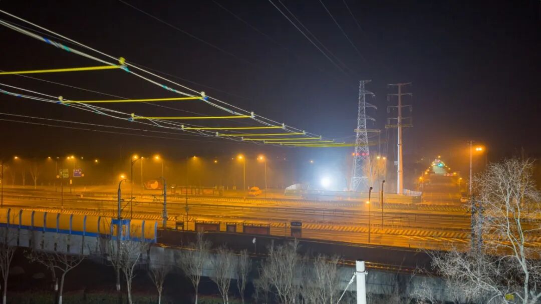 凌晨3时30分,最后一个卡扣固定完成,经过晃动、复测承力索张力、核对安全距离,弧形的承力防护空间最终形成,将施工区段与下方的地铁接触网、江北大道路面彻底隔离开来。通过众人紧密协作、精准操作,耗费近4个小时,成功在深夜里攻坚架起一张“安全防护网”,不仅为后续110千伏河坊线、槽龙线非独立耐张段改造筑牢安全防线,更守护着城市交通与电网运行的双重平安。