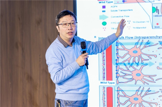南京医科大学基础医学院院长助理、药理学系主任范益在题为《水通道蛋白4、脑淋巴系统与帕金森病》的报告中,系统阐释了AQP4在脑胶质淋巴系统功能中的关键作用及其与帕金森病的关联。他指出,脑内废物清除是复杂的生物学过程,并非单纯依赖扩散或对流的物理方式,AQP4缺失会引发胶质淋巴系统功能障碍,还会加剧 α-突触核蛋白的沉积与神经元丢失。他进一步阐明,AQP4 的功能远不止于水通道,其可通过影响星形胶质细胞功能参与帕金森病病理进程,相关深层机制仍有待探索。该研究为理解帕金森病发病机制及寻找潜在干预靶点提供了全新视角。