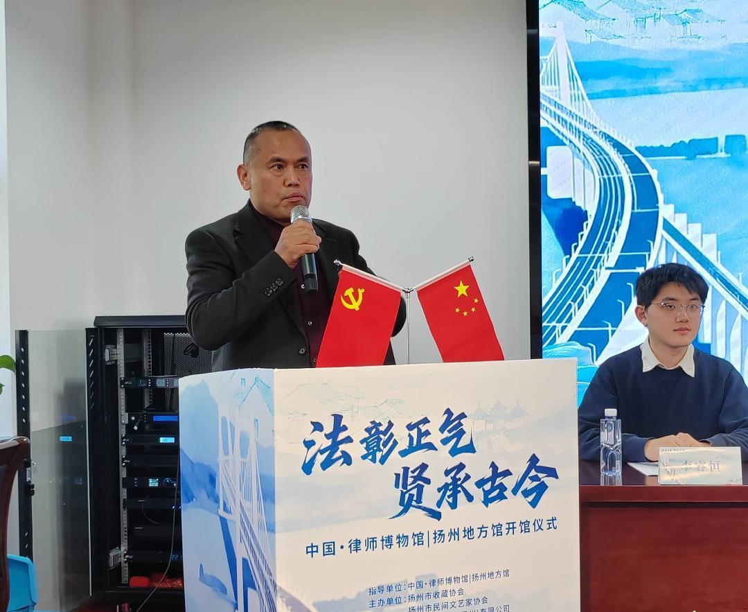 中国律师博物馆发起人孙在辰先生在致辞中介绍了中国律师博物馆的总体情况以及在全国多地建立分馆的推进情况。他表示,扬州地方馆的设立,让律师博物馆的法治文化版图进一步拓展,也为法治精神的区域化传承提供了新的范本。