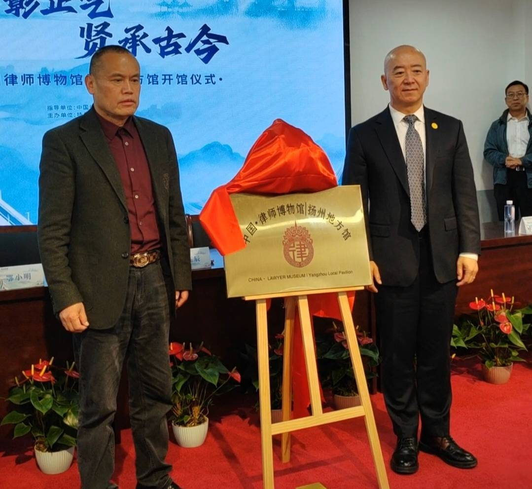 在热烈掌声中,中国律师博物馆发起人孙在辰与鄂小明先生共同为中国律师博物馆扬州地方馆揭牌,其他领导与嘉宾一同见证。