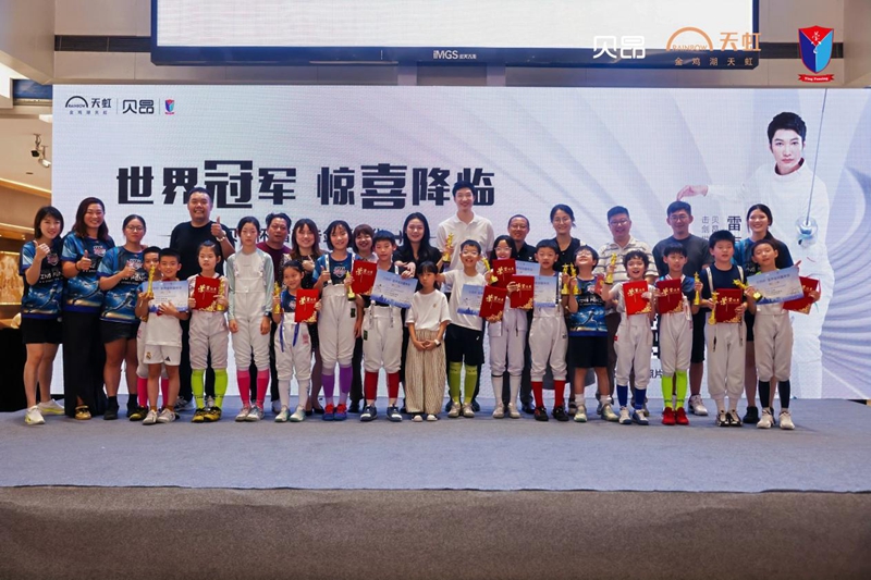 2025年10月7日,苏州天虹商场(金鸡湖店)通过场地改造搭建临时击剑赛场,由贝昂智能与苏州张莹击剑馆、苏州金鸡湖天虹商场联合主办的“贝昂杯·雷声击剑嘉年华”在此落幕。击剑世界冠军雷声、贝昂智能董事长冉宏宇博士及数十名青少年击剑爱好者参与活动,活动以“科技+体育”为核心形式,通过赛事展示、专业指导、主题对谈等环节,探索青少年体育推广与健康理念传播的结合模式。