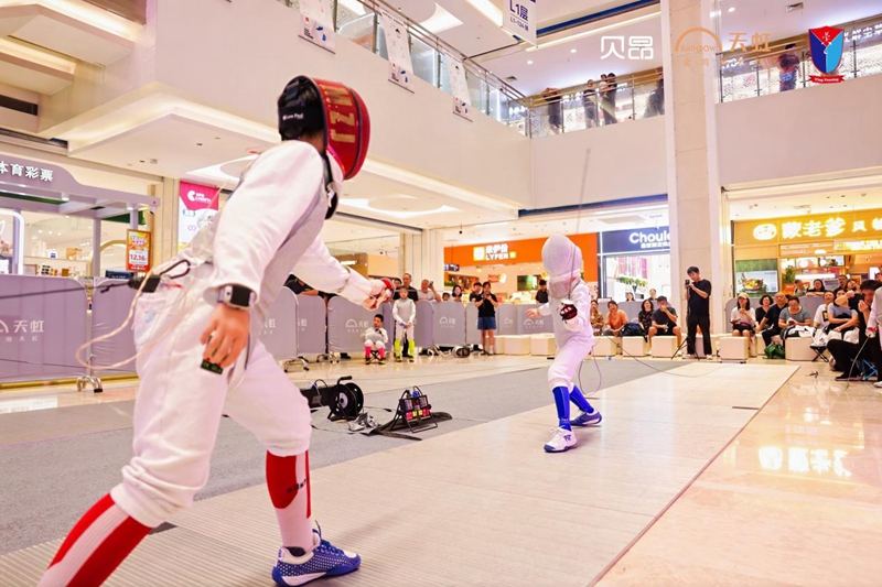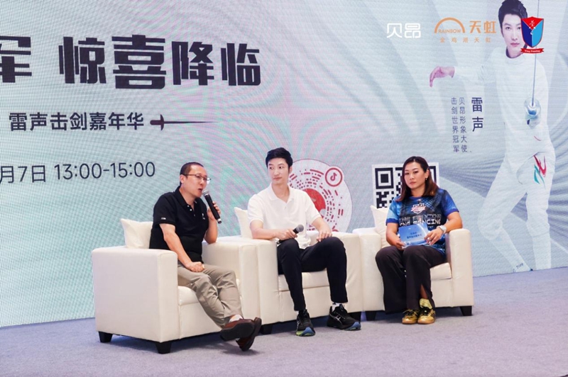谈及击剑运动推广模式,雷声指出,传统击剑活动多集中于专业场馆,此次在商业综合体举办活动,可降低大众接触门槛,助力该项运动扩大受众群体。其同时分享个人成长经历称,“阶梯式目标设定”对青少年体育训练与长期发展具有重要意义,建议青少年从基础阶段逐步建立运动兴趣与能力。