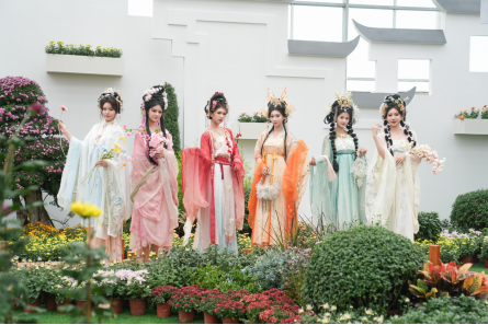 上午九时三十分,伴随着悠扬的音乐,嘉宾与游客陆续入场。开幕式以一场以花神舞蹈拉开序幕,舞姿灵动;随后登场的诗人NPC与花神舞翩然登场,手捧鲜花与游客互动,意境悠然。园区特别设置了儿童街舞、青年乐队演出轮番上演,引得现场掌声连连。游客们在花海间拍照打卡,菊香弥漫的空气中洋溢着金秋的喜悦。当天现场人气高涨,瞬时人流量突破上千人次,开园首日热度空前。