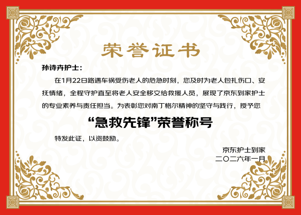 从一个人的善举到一群人的坚守,京东护士到家正在用制度托举善意。正如京东护士到家江苏地区负责人所说:“我们希望通过激励机制,吸引更多像孙护士这样有爱心、有专业、有担当的护士加入,成为社会上流动的白衣英雄,一起守护更多家庭。”当越来越多的“孙诗卉”们穿梭在城市街巷,带着护理包也带着一份笃定的勇气,“路见不平、白衣相助”便不再只是偶然,而将成为流动在每一条街道上的温暖日常。