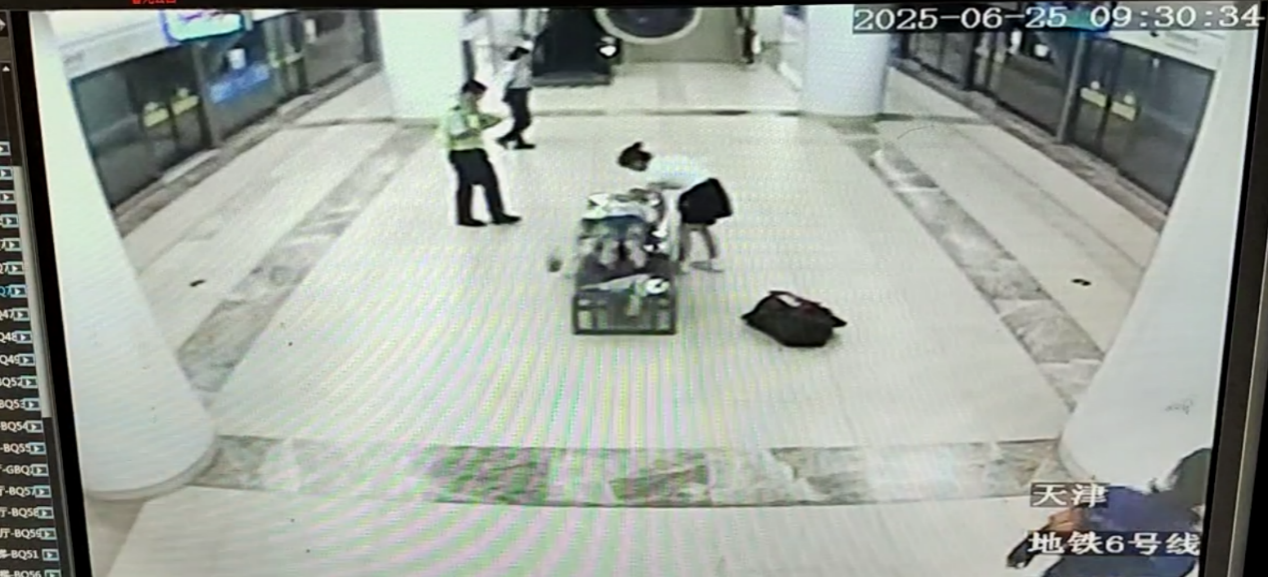 图为天津站的孙护士地铁现场施救监控画面